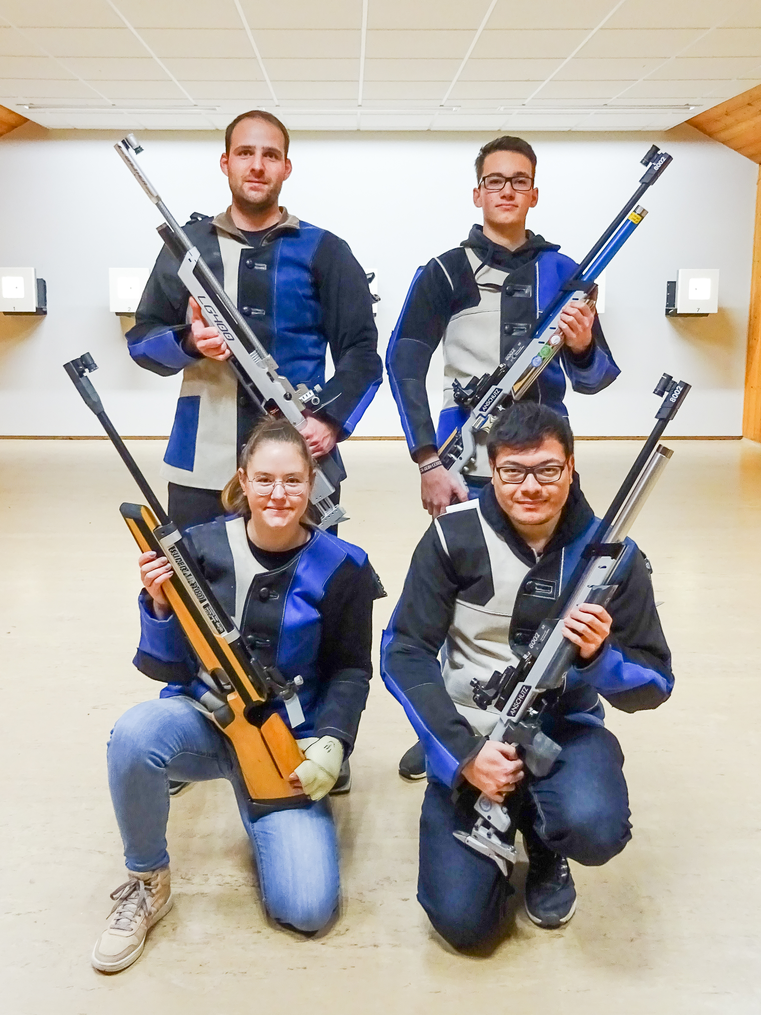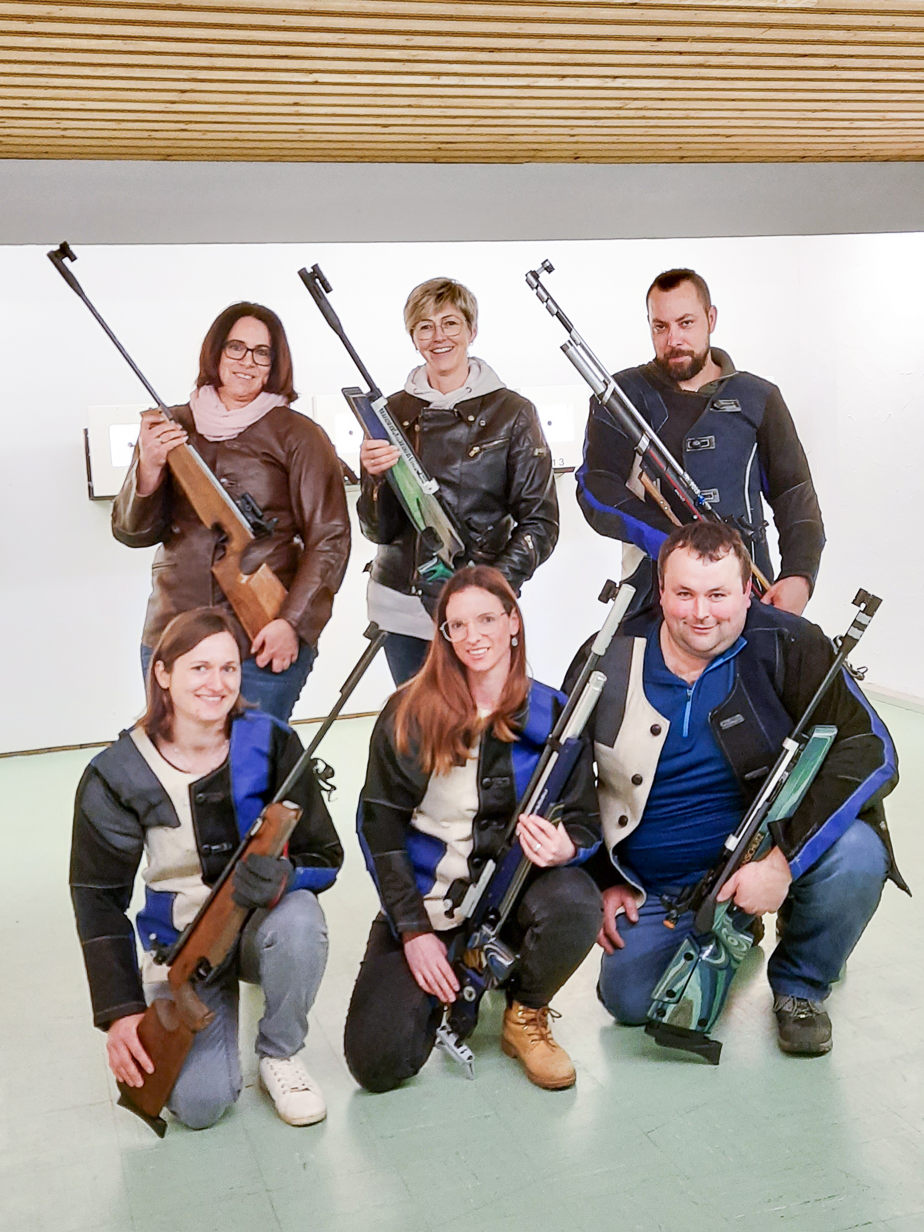 In unserem Schützenhaus kann auf zwei Schießständen mit jeweils sieben Anlagen Luftgewehr geschossen werden. Auf einer Distanz von 10 Metern wird hier stehend freihändig geschossen, wobei der Schütze ohne Anlehnung und künstliche Stütze stehen muss. Außer dem Gewehr verwenden Luftgewehrschützen ein umfangreiches Equipment: Schießjacke und Schießhose geben dem Körper Halt, dürfen diesen jedoch nicht unzulässig stützen. Spezielle Schießschuhe mit flacher Sohle bieten sicheren Stand und ein Schießhandschuh entlastet die Stützhand.