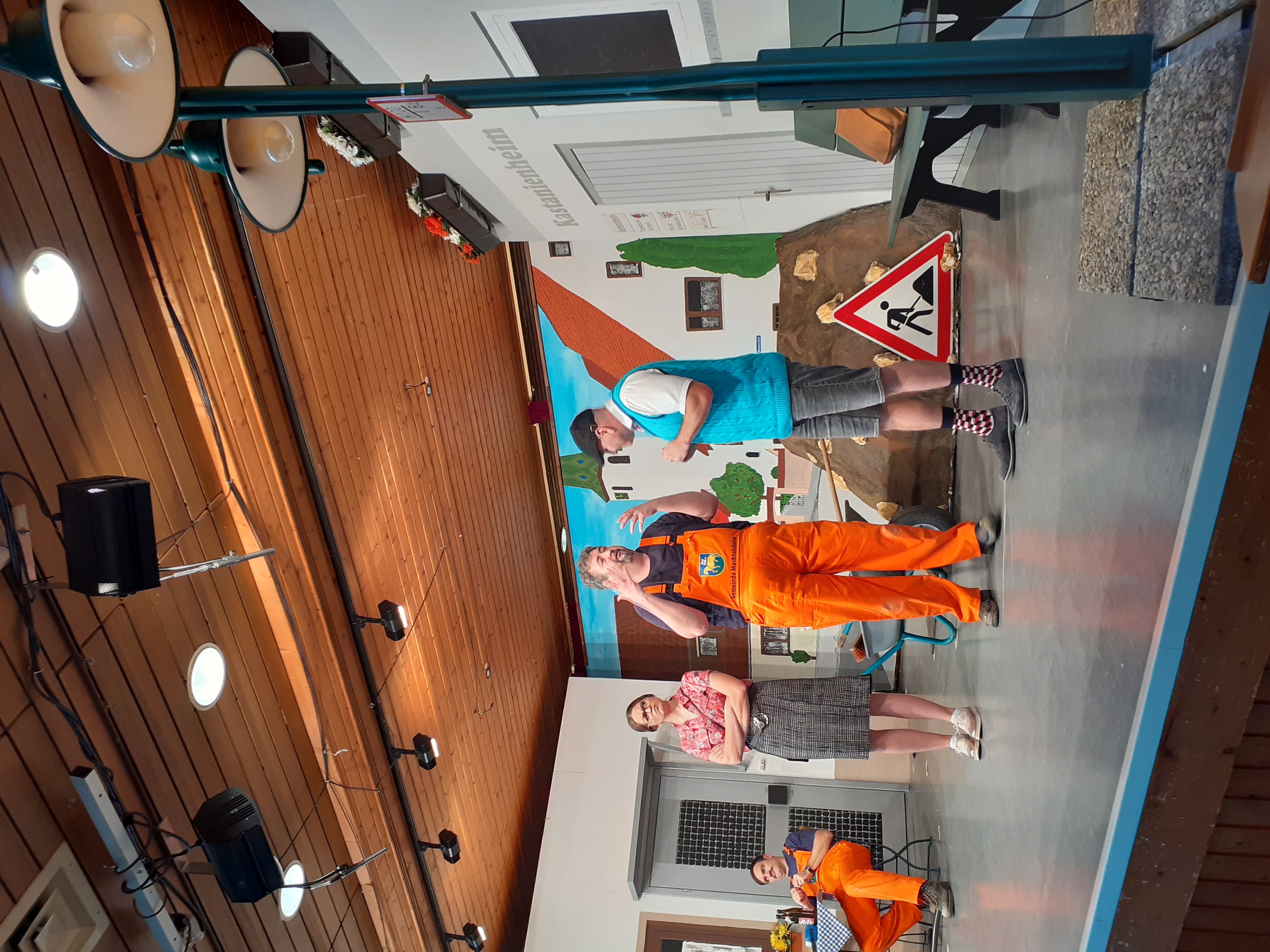 Es war die Idee von unserem Vereinsmitglied und Ehrenvorsitzenden Erich Mändle, wieder eine Laienspielgruppe zu gründen. Theaterspieler zu finden war nicht schwer, berichtete er im Gespräch und so wurden 1979 die Proben zum Stück “Kuvege” (Kuhmistverwertungsgesellschaft) aufgenommen. Das Stück lag archiviert auf dem Speicher des Rathauses und war in der Vergangenheit schon einmal zur Aufführung gekommen. Inzwischen gab es eine Mehrzweckhalle im Ort - die heutige Lindenhalle, so wurde dort das Stück einmalig vor ausverkauftem Haus aufgeführt, wie er berichtete.